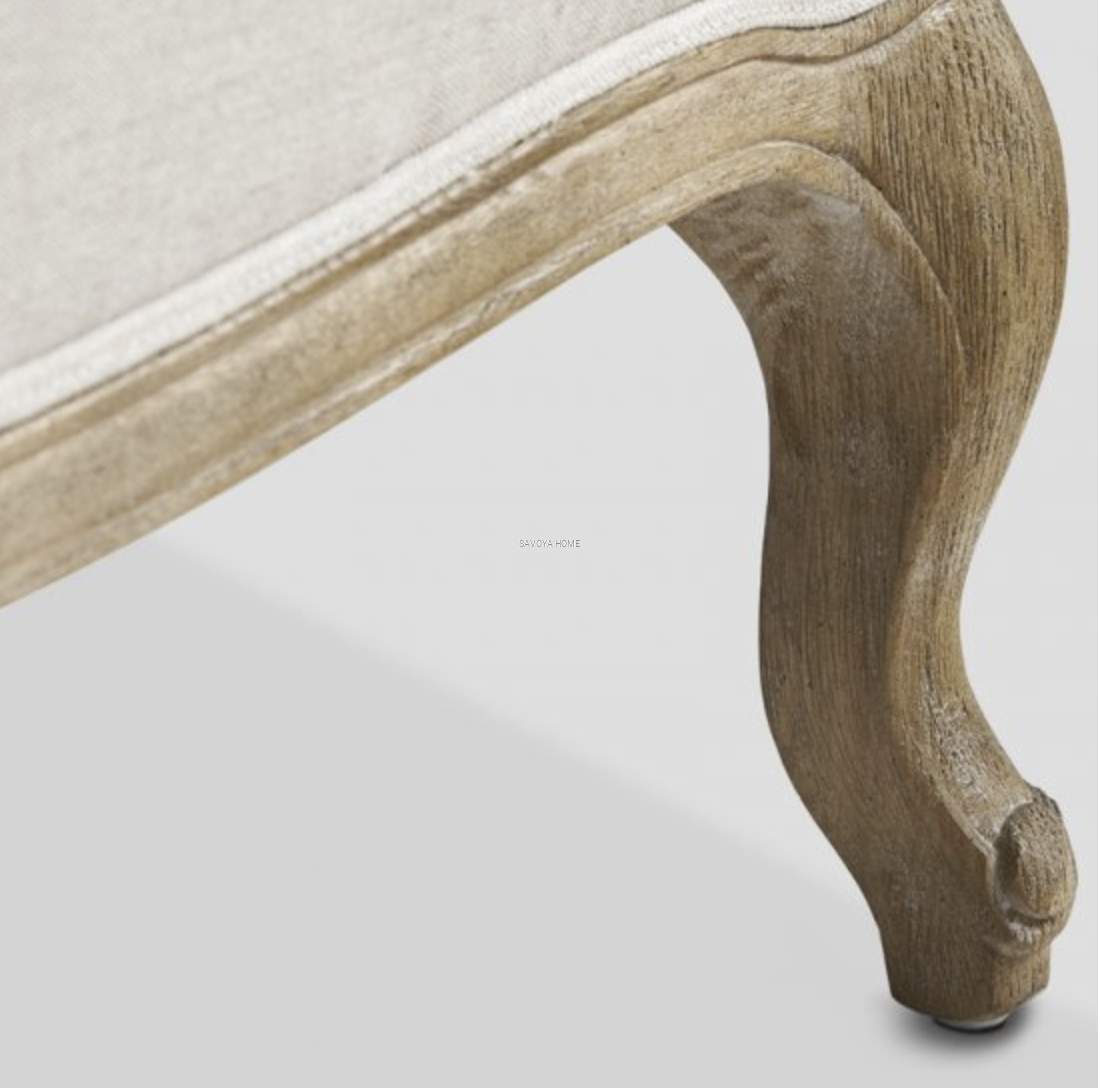 Fotel z ramą w wykończeniu Rovere decapato, pokrycie, siedzisko i poduszka z tkaniny w kolorze Écrù.