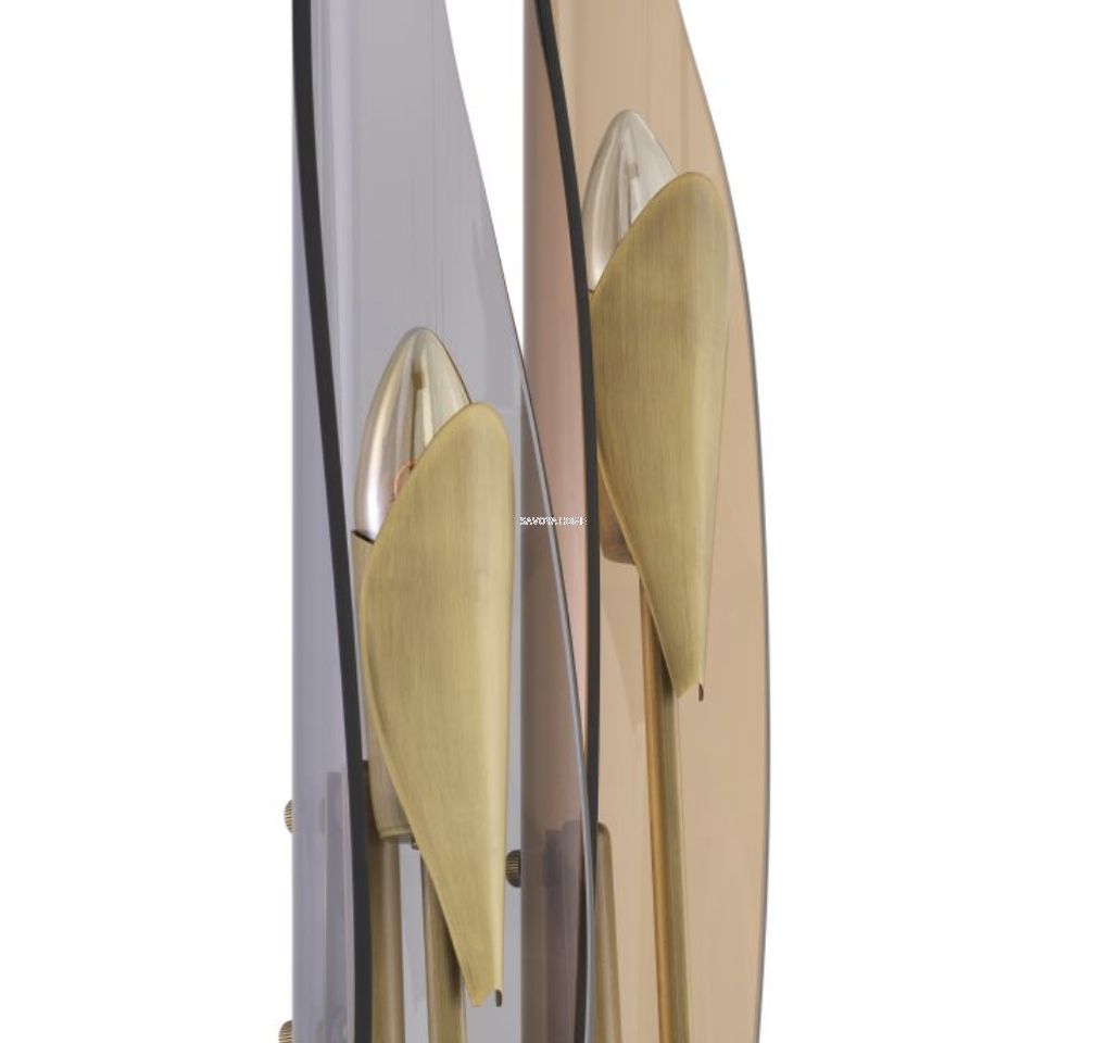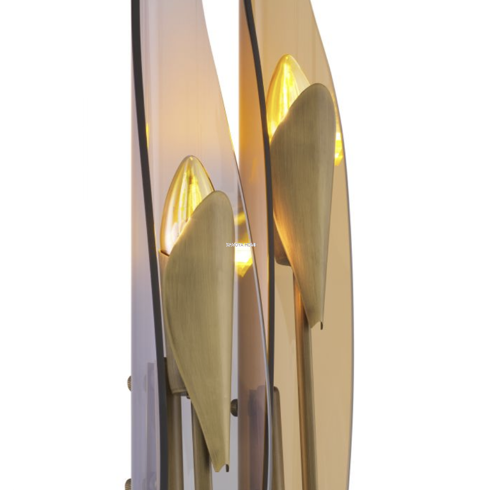 Materiał: mosiądz antyczny, szkło dymione, szkło bursztynowe