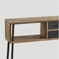 Konsola z 2 szufladami ze starego drewna pochodzącego z recyklingu, wykończenie Naturale, metalowa podstawa i fronty szuflad z wykończeniem Ferro.