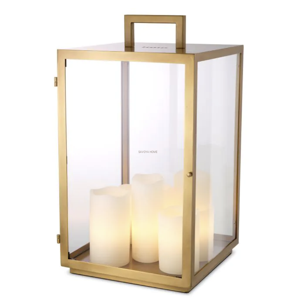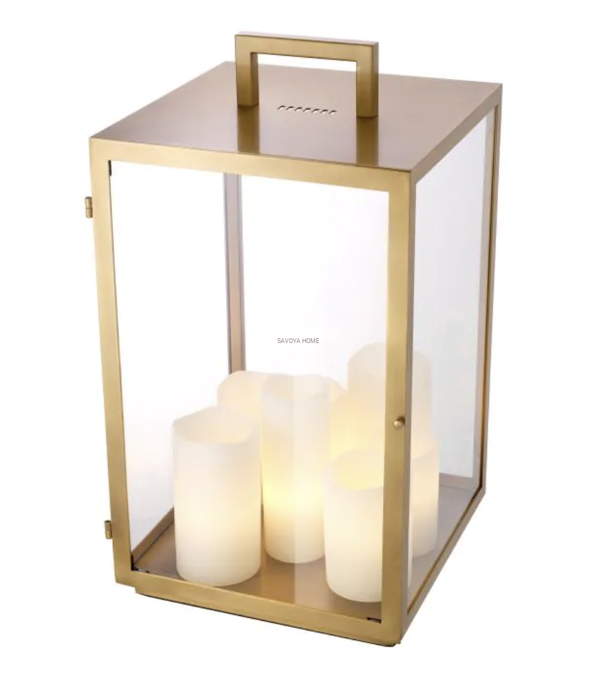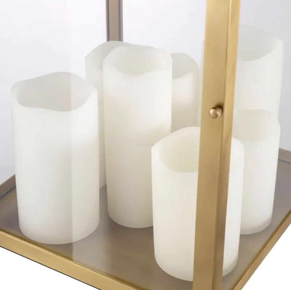 Materiał: antyczny mosiądz, szkło transparentne, sztuczne świece